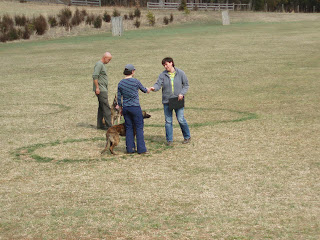 Enjoying the hospitality of a nice indoor facility on a snowy spring night - practicing face attack and defense of handler.